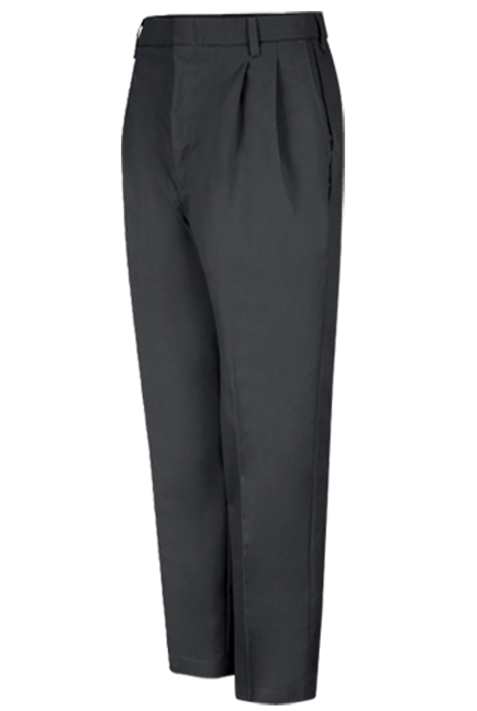 TOUCHTEX PRO™ with superior color retention and soil release. A tailored classic. Relaxed fit with straightleg styling. Hook-and-eye closure. Double front pleats. Two slack-style front pockets and two set-in hip pockets; left pocket has button closure. TruBlack fabric resists fading.